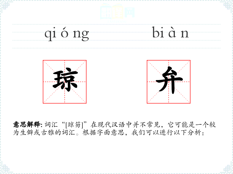 词汇“[琼笏]”在现代汉语中并不常见,它可能是一个较为生僻或古雅的词汇。根据字面意思,我们可以进行以下分析: