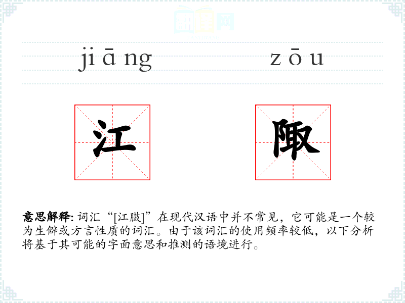 词汇“[江臌]”在现代汉语中并不常见,它可能是一个较为生僻或方言性质的词汇。由于该词汇的使用频率较低,以下分析将基于其可能的字面意思和推测的语境进行。