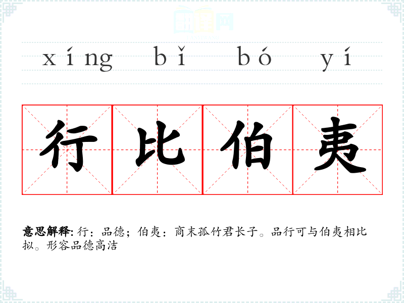 行:品德;伯夷:商末孤竹君长子。品行可与伯夷相比拟。形容品德高洁