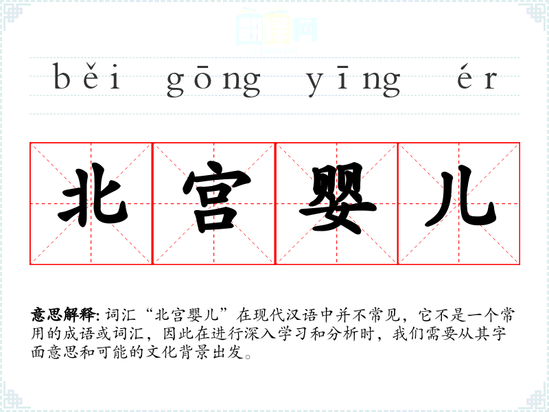 词汇“北宫婴儿”在现代汉语中并不常见,它不是一个常用的成语或词汇,因此在进行深入学*和分析时,我们需要从其字面意思和可能的文化背景出发。