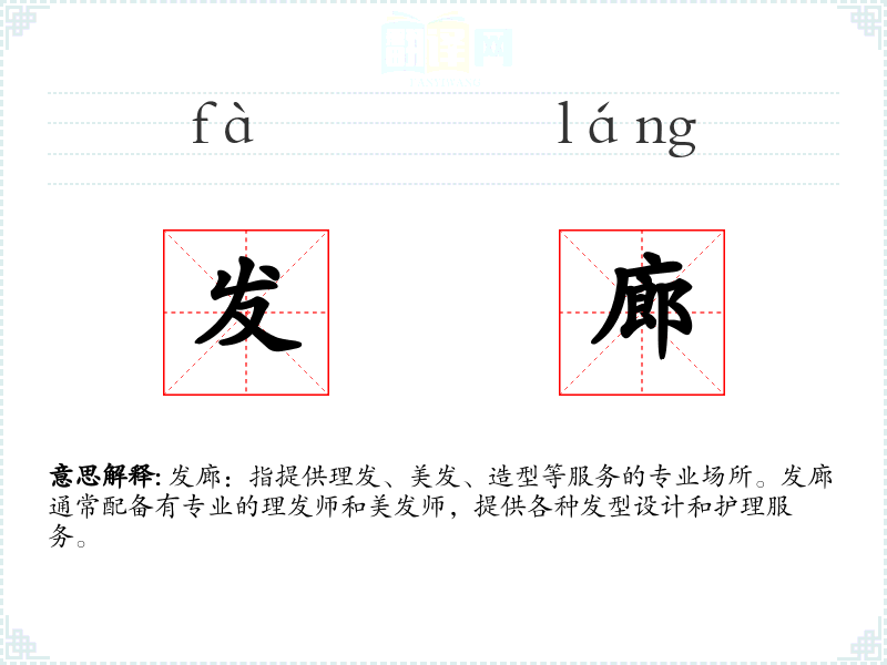 - 词源:发廊一词源自中文,结合了“发”(头发)和“廊”(长廊),形象地描述了提供头发服务的场所。