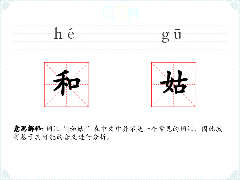 词汇“[和姑]”在中文中并不是一个常见的词汇,因此我将基于其可能的含义进行分析。