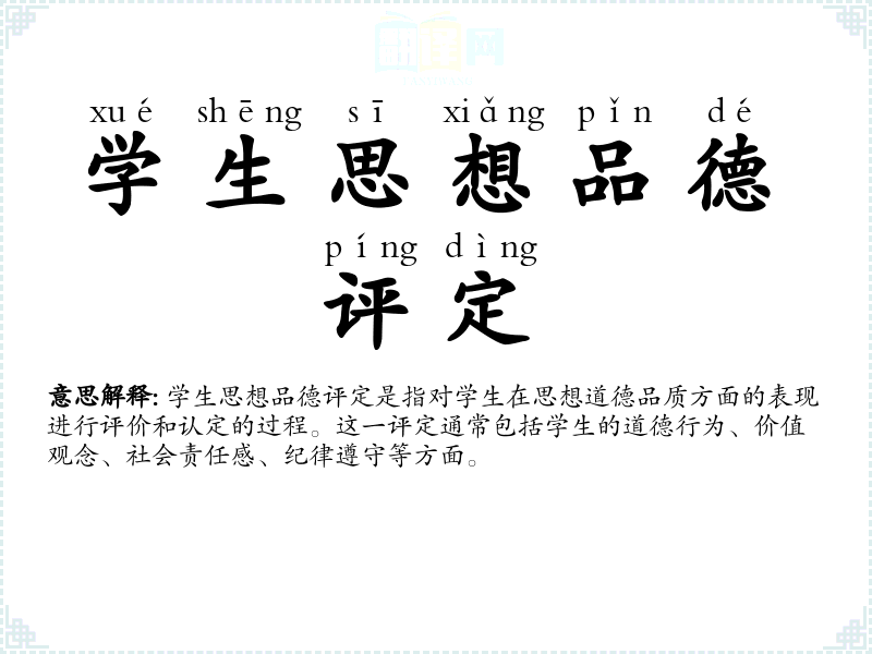 学生思想品德评定是指对学生在思想道德品质方面的表现进行评价和认定的过程。这一评定通常包括学生的道德行为、价值观念、社会责任感、纪律遵守等方面。