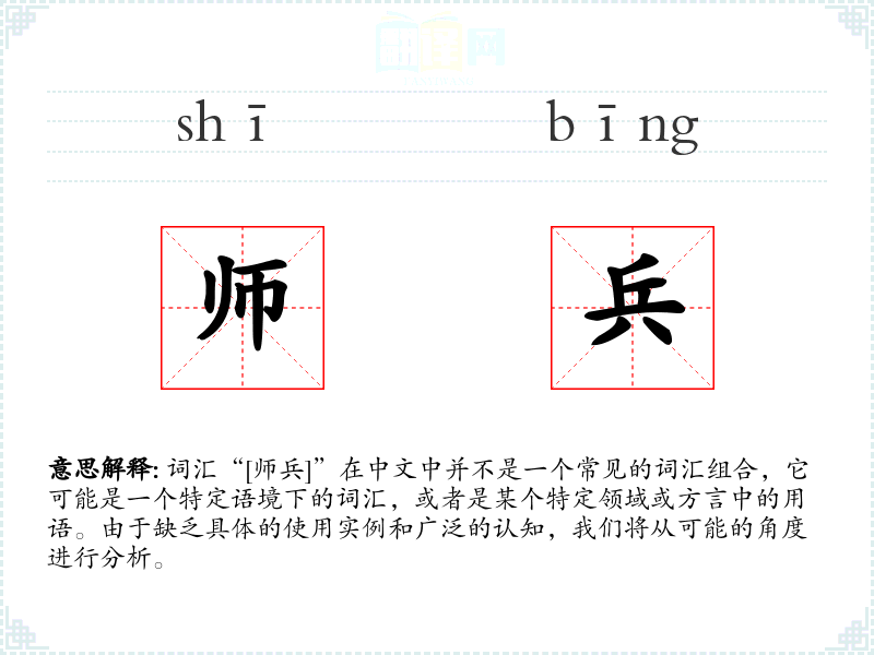 由于“师兵”不是一个标准词汇,我们无法结合图片、音乐或视频进行视觉和听觉联想。