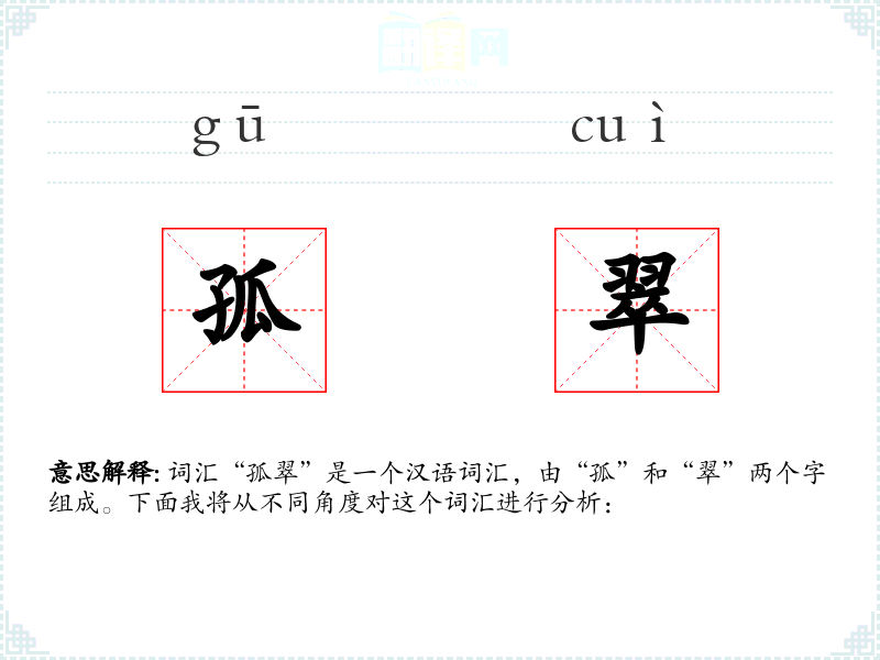 - 词源:“孤”和“翠”都是古代汉语中常用的词汇,组合在一起形成了新的意境。