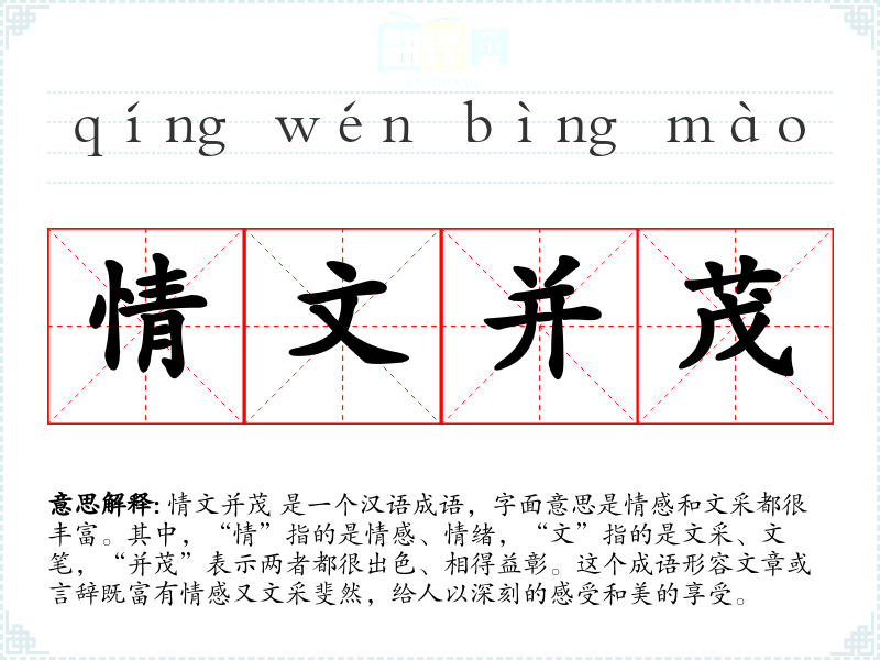 - 理解总结:情文并茂这个成语深刻体现了汉语文化中对情感和文采双重重视的传统,它在文学和日常交流中都有着重要的应用价值。