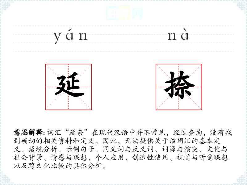 如果“延奈”是某个特定领域或方言中的词汇,可能需要更具体的信息和上下文来进行分析。在没有足够信息的情况下,无法对该词汇进行深入的学习和分析。