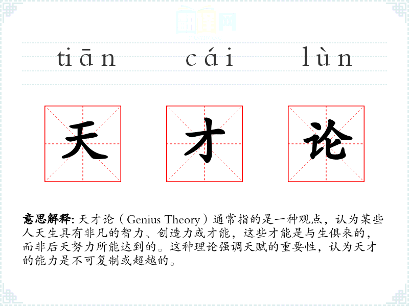 - 同义词:天赋论(Talent Theory)、先天论(Innate Theory)