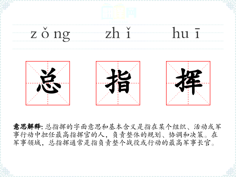 总指挥这个词在语言学习和表达中具有重要性,它不仅代表了权威和责任,还体现了领导力和决策能力。通过深入学习和分析,可以更好地理解和运用这个词,丰富语言表达的层次和深度。