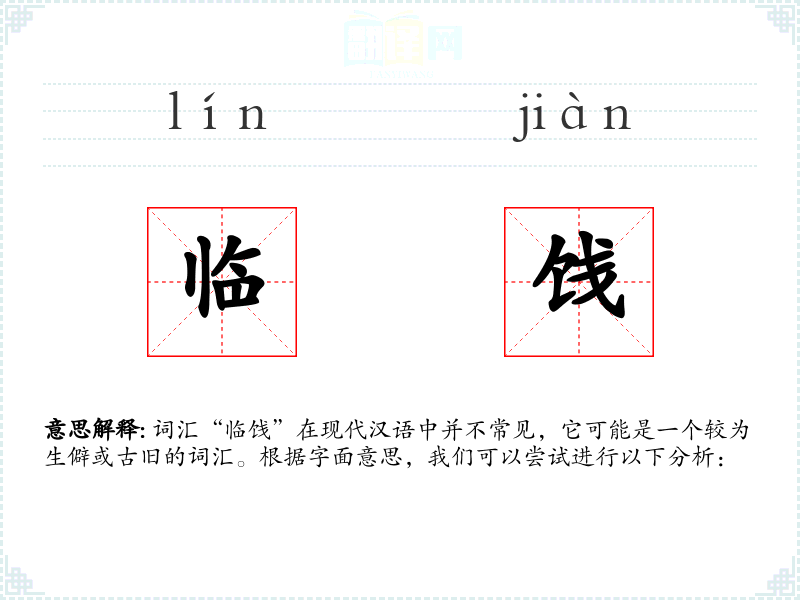 词汇“临饯”在现代汉语中并不常见,它可能是一个较为生僻或古旧的词汇。根据字面意思,我们可以尝试进行以下分析: