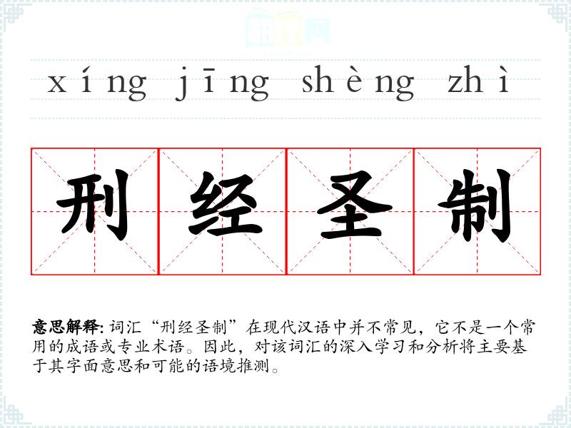词汇“刑经圣制”在现代汉语中并不常见,它不是一个常用的成语或专业术语。因此,对该词汇的深入学习和分析将主要基于其字面意思和可能的语境推测。