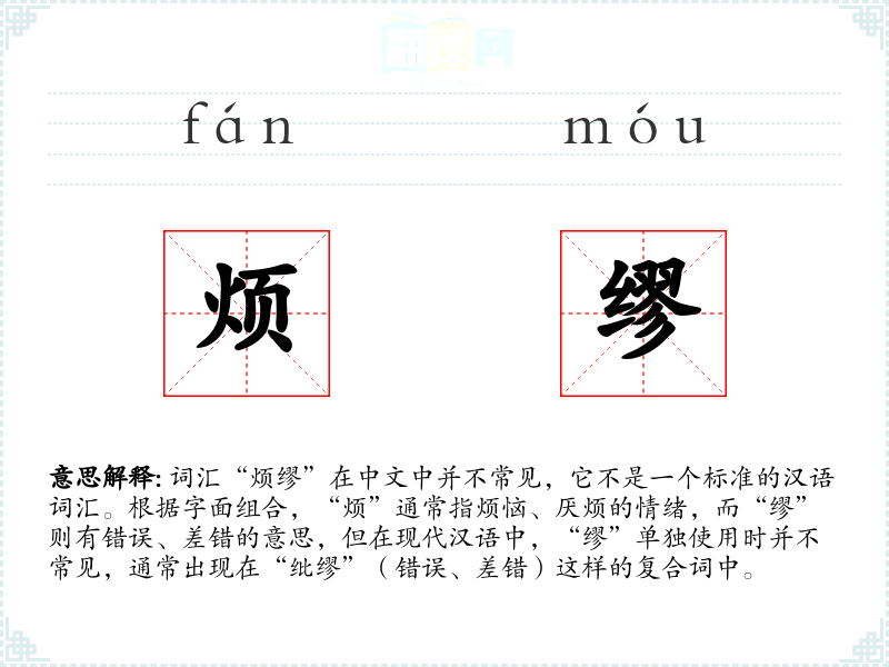 由于“烦缪”不是一个标准词汇,我们可以推测它可能指的是一种因错误或差错而引起的烦恼或困扰。
