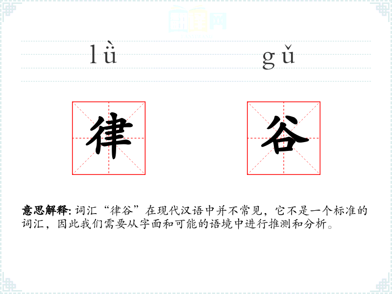 词汇“律谷”在现代汉语中并不常见,它不是一个标准的词汇,因此我们需要从字面和可能的语境中进行推测和分析。