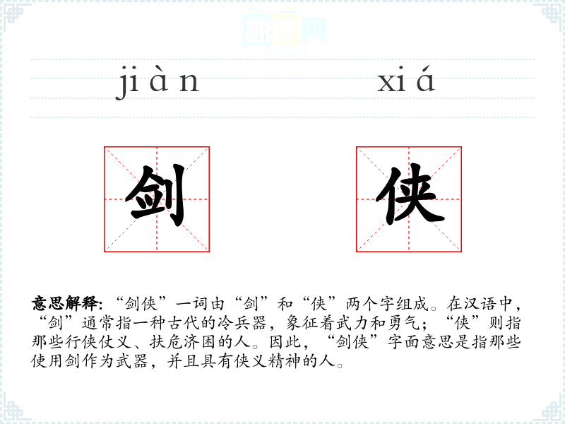“剑侠”一词由“剑”和“侠”两个字组成。在汉语中,“剑”通常指一种古代的冷兵器,象征着武力和勇气;“侠”则指那些行侠仗义、扶危济困的人。因此,“剑侠”字面意思是指那些使用剑作为武器,并且具有侠义精神的人。