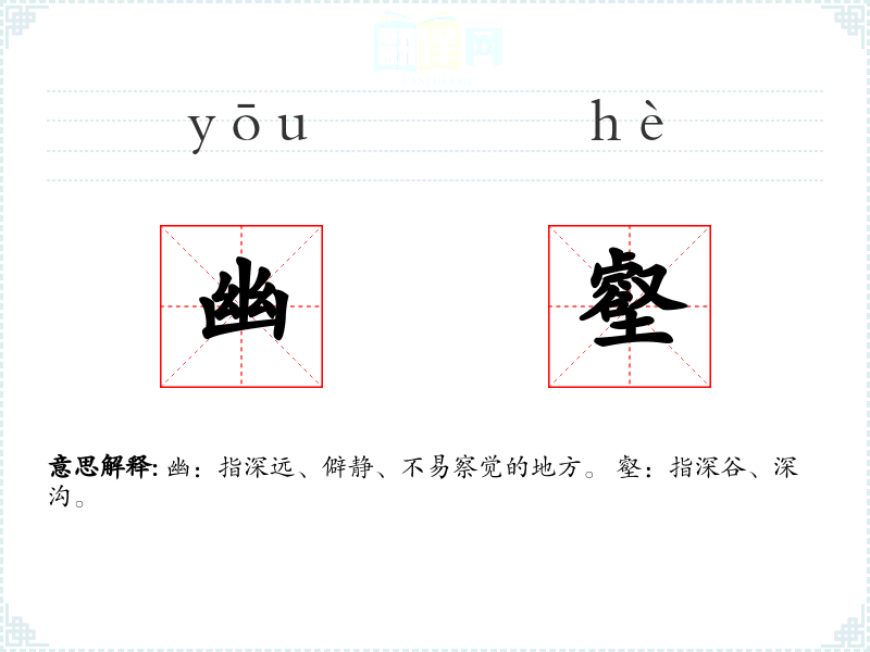 幽壑:字面意思是指深邃而僻静的山谷。基本含义是指那些远离人烟、环境幽静、深邃的地方。