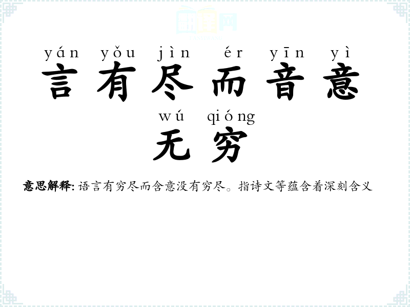 语言有穷尽而含意没有穷尽。指诗文等蕴含着深刻含义