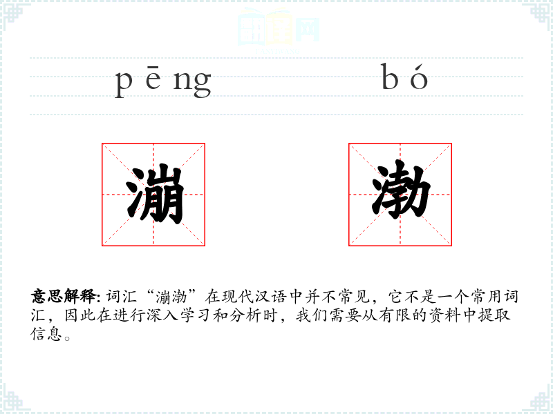 词汇“漰渤”在现代汉语中并不常见,它不是一个常用词汇,因此在进行深入学习和分析时,我们需要从有限的资料中提取信息。
