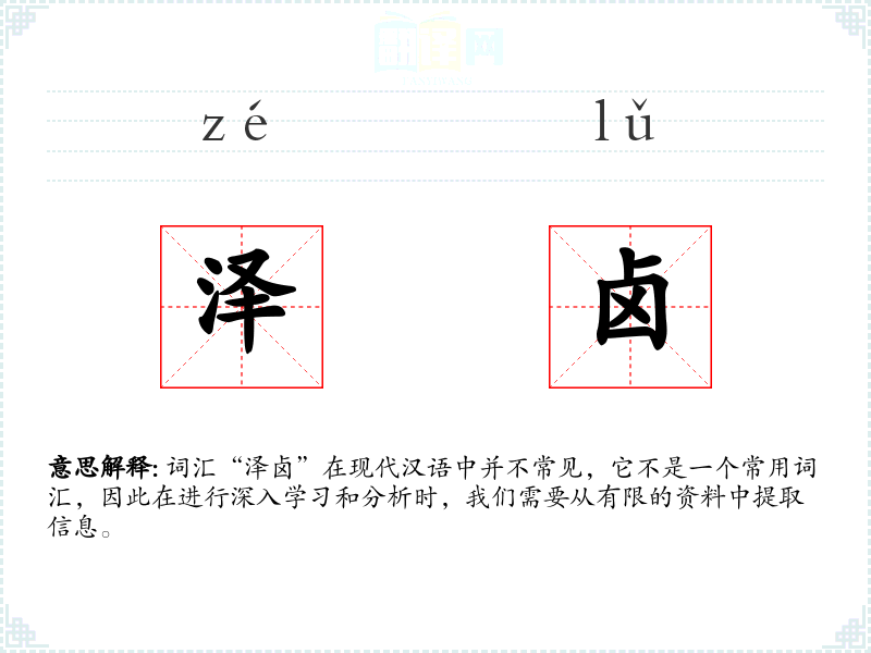 词汇“泽卤”在现代汉语中并不常见,它不是一个常用词汇,因此在进行深入学习和分析时,我们需要从有限的资料中提取信息。