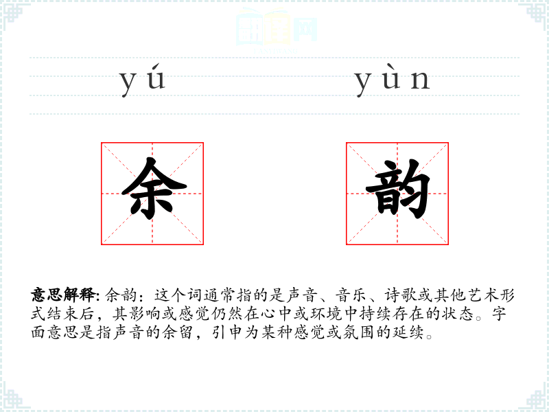 "余韵"的意思解释、余韵是什么意思由翻译网汉语词典查词提供。