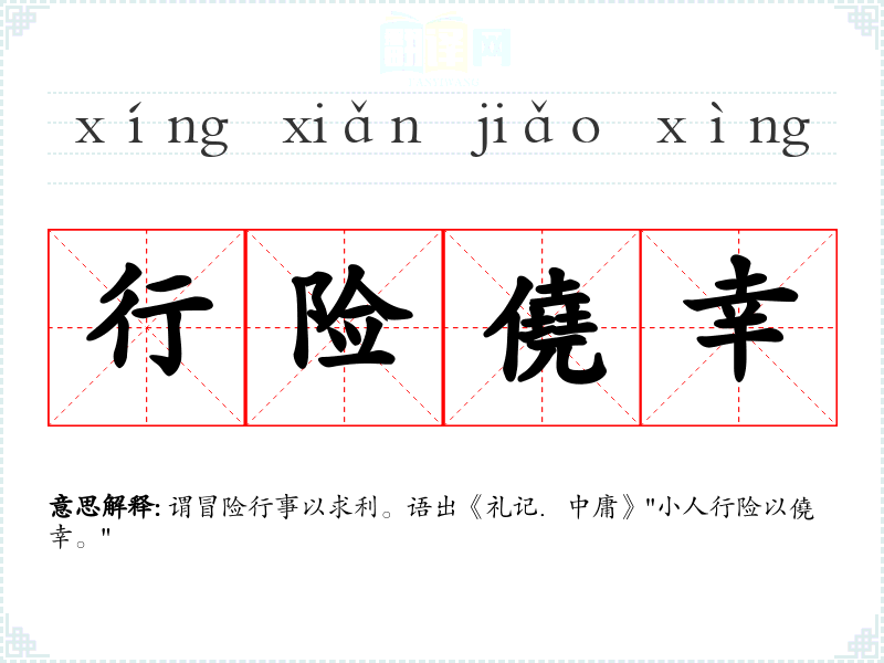 谓冒险行事以求利。语出《礼记.中庸》"小人行险以僥幸。"