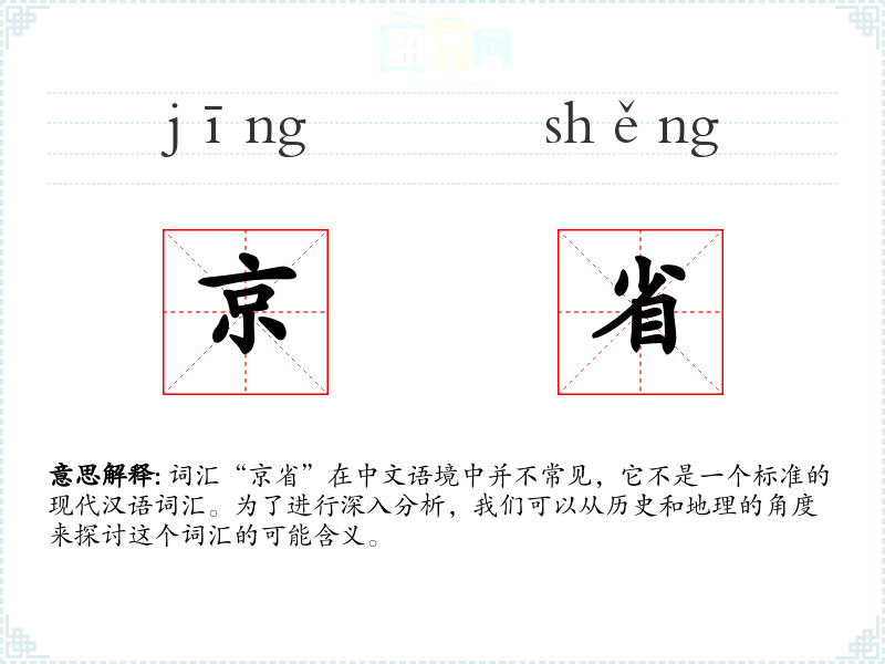 词汇“京省”在中文语境中并不常见,它不是一个标准的现代汉语词汇。为了进行深入分析,我们可以从历史和地理的角度来探讨这个词汇的可能含义。