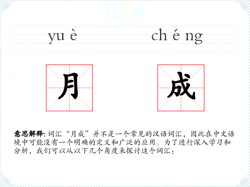 "月成"的意思解释、月成是什么意思由翻译网汉语词典查词提供。