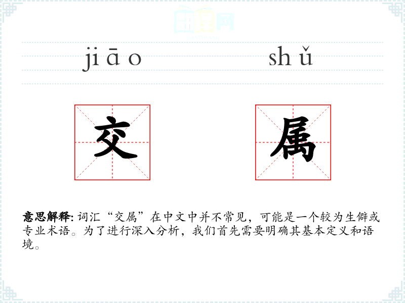 词汇“交属”在中文中并不常见,可能是一个较为生僻或专业术语。为了进行深入分析,我们首先需要明确其基本定义和语境。