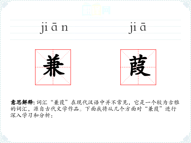 在日常生活中,“兼葭”这个词汇可能不太常用,但在某些特定的文学创作或哲学讨论中,它可以是一个富有表现力的词汇。