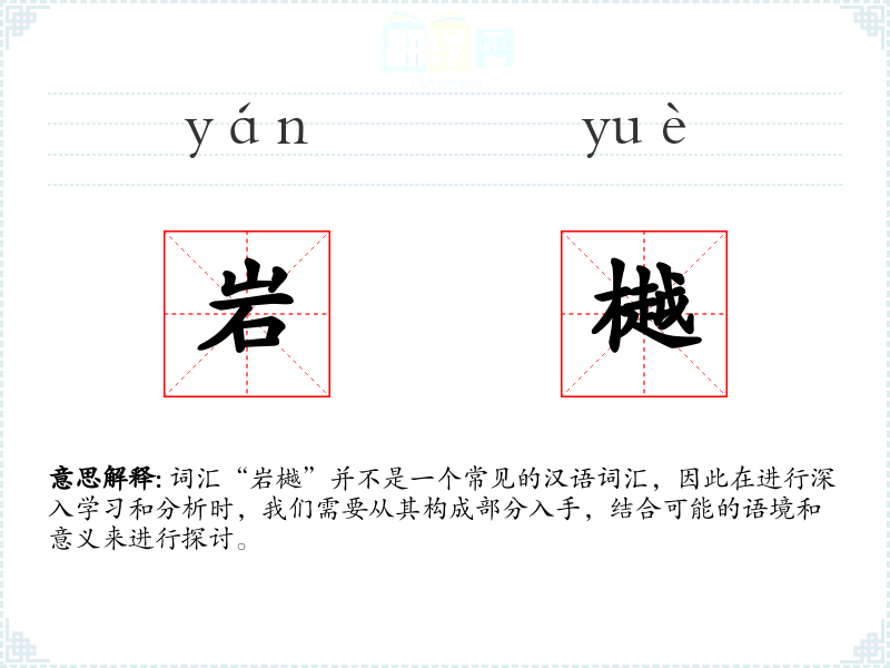词汇“岩樾”并不是一个常见的汉语词汇,因此在进行深入学*和分析时,我们需要从其构成部分入手,结合可能的语境和意义来进行探讨。