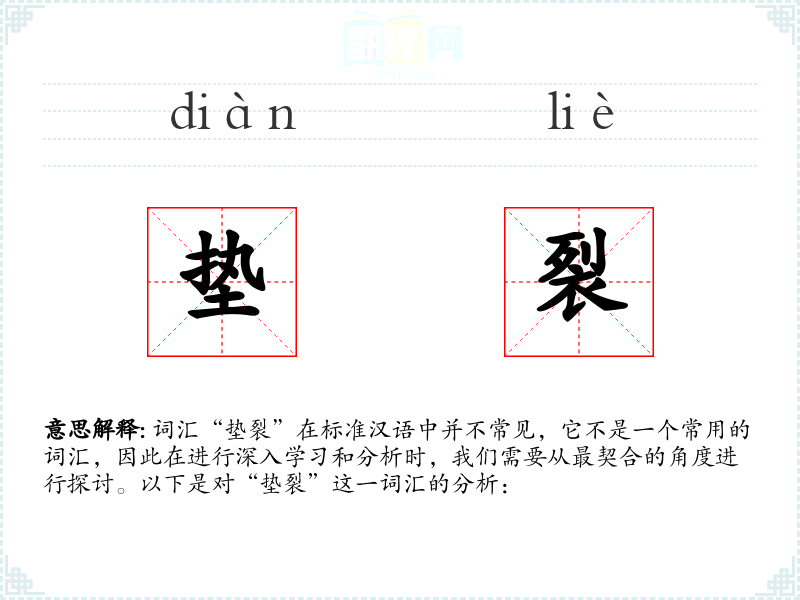 词汇“垫裂”在标准汉语中并不常见,它不是一个常用的词汇,因此在进行深入学习和分析时,我们需要从最契合的角度进行探讨。以下是对“垫裂”这一词汇的分析: