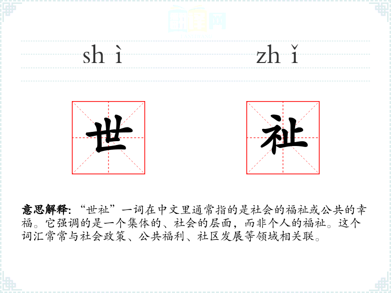 “世祉”一词的词源可以追溯到古代汉语,其中“世”指的是世界或社会,“祉”则意味着幸福或福祉。随着时间的推移,这个词汇的含义逐渐固定为社会层面的福祉。
