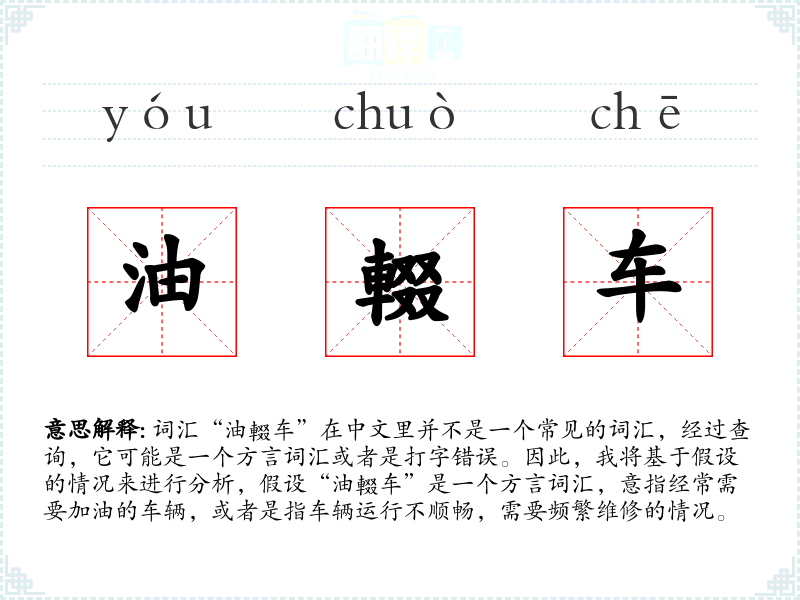 - 由于“油輟车”不是一个标准词汇,其词源和演变难以考证,可能是某个地区方言中的特定表达。