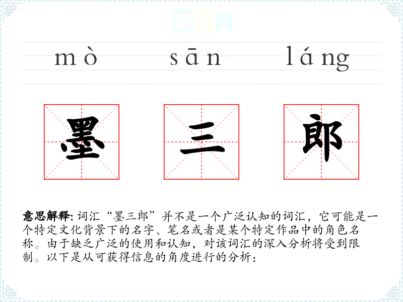 由于“墨三郎”不是一个广泛认知的词汇,上述分析更多是基于可能的假设和推测。如果该词汇有特定的背景或使用情境,需要更具体的信息来进行准确的分析。