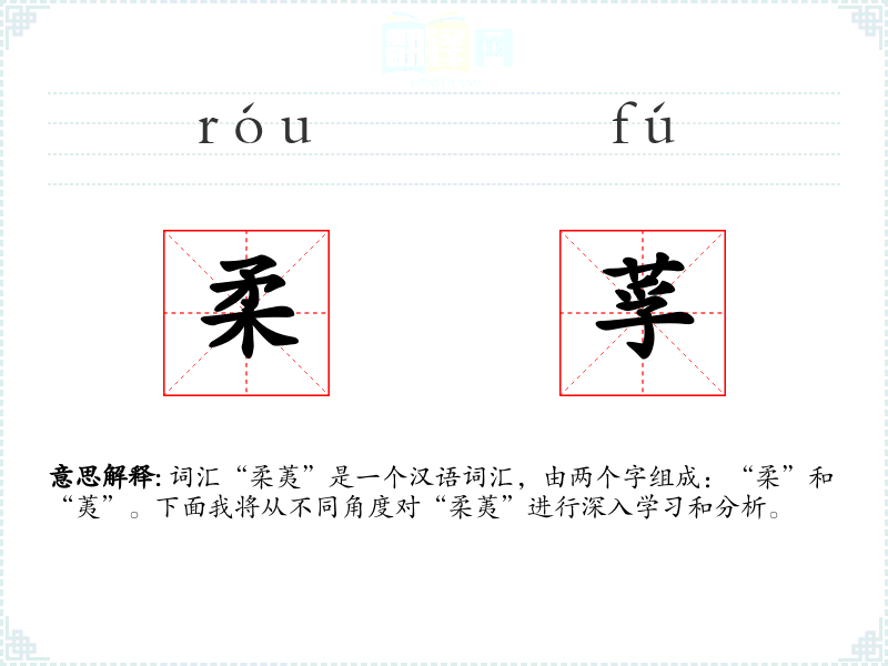 词汇“柔荑”是一个汉语词汇,由两个字组成:“柔”和“荑”。下面我将从不同角度对“柔荑”进行深入学*和分析。