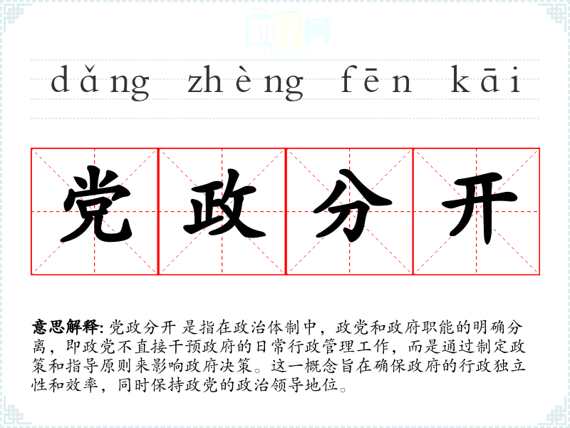 - 同义词:政党与政府分离、政党与行政分离