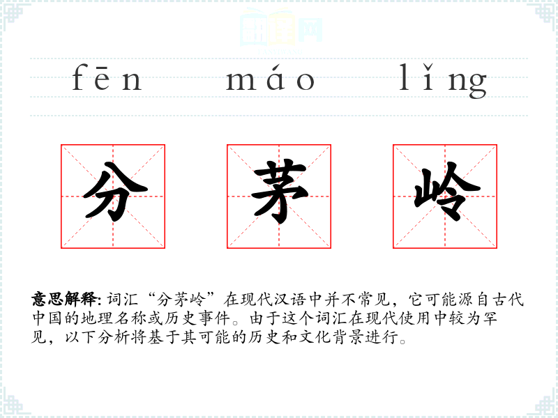词汇“分茅岭”在现代汉语中并不常见,它可能源自古代的地理名称或历史。由于这个词汇在现代使用中较为罕见,以下分析将基于其可能的历史和文化背景进行。