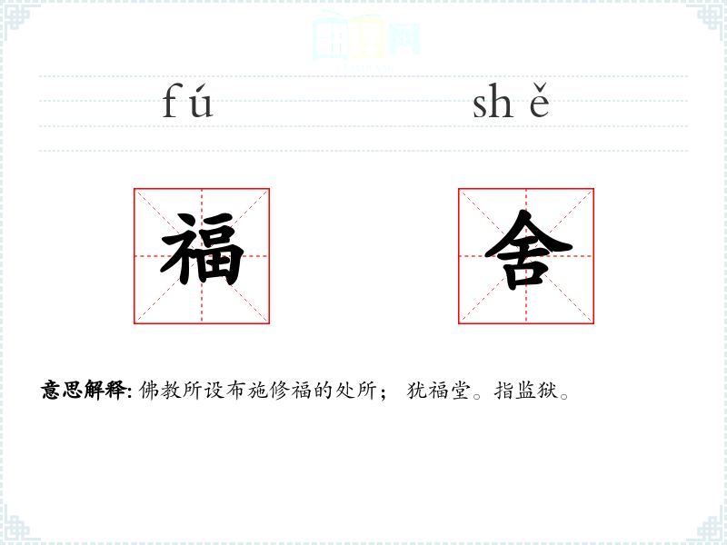 佛教所设布施修福的处所; 犹福堂。指监狱。