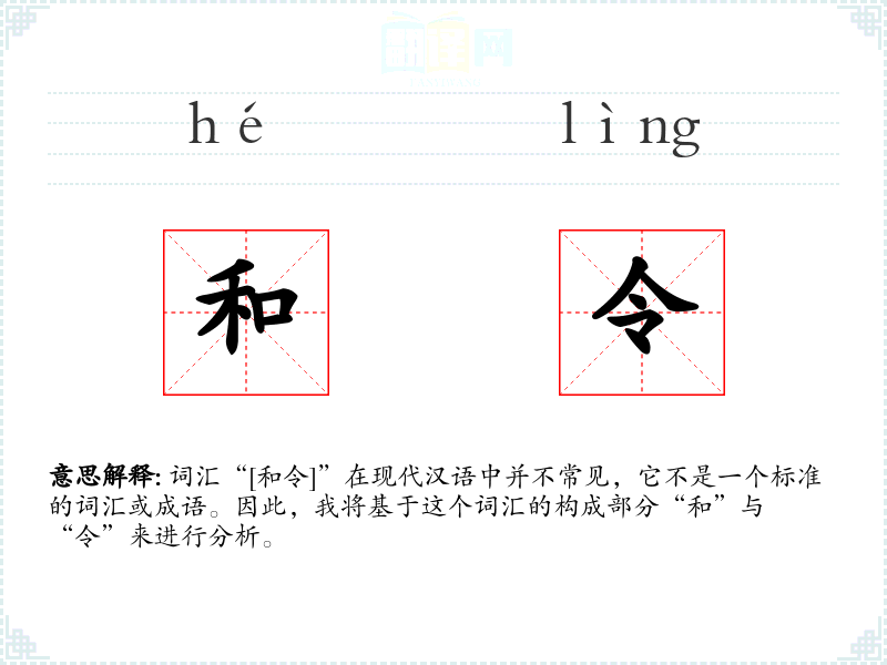 词汇“[和令]”在现代汉语中并不常见,它不是一个标准的词汇或成语。因此,我将基于这个词汇的构成部分“和”与“令”来进行分析。