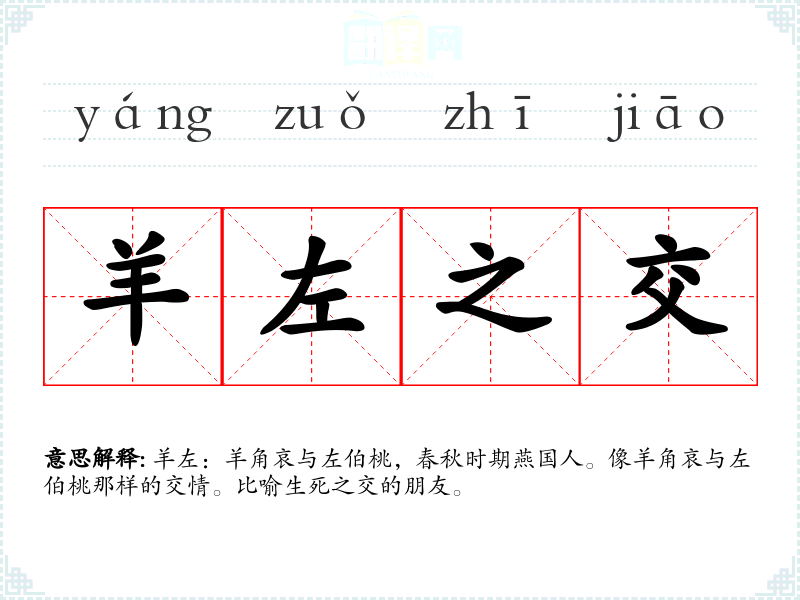 羊左:羊角哀与左伯桃,春秋时期燕国人。像羊角哀与左伯桃那样的交情。比喻生死之交的朋友。