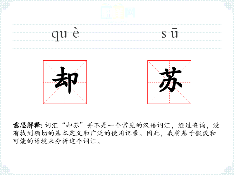 由于“却苏”不是一个标准词汇,我们可以尝试从字面上解释: