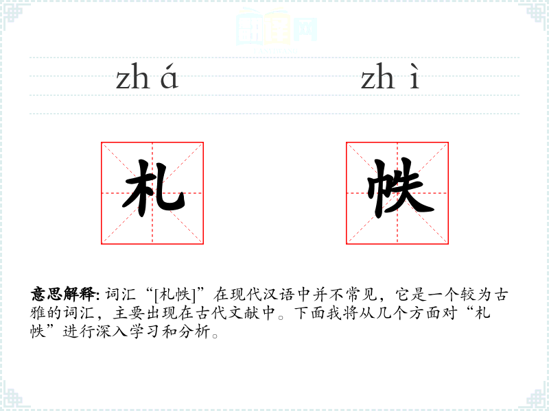 词汇“[札帙]”在现代汉语中并不常见,它是一个较为古雅的词汇,主要出现在古代文献中。下面我将从几个方面对“札帙”进行深入学习和分析。