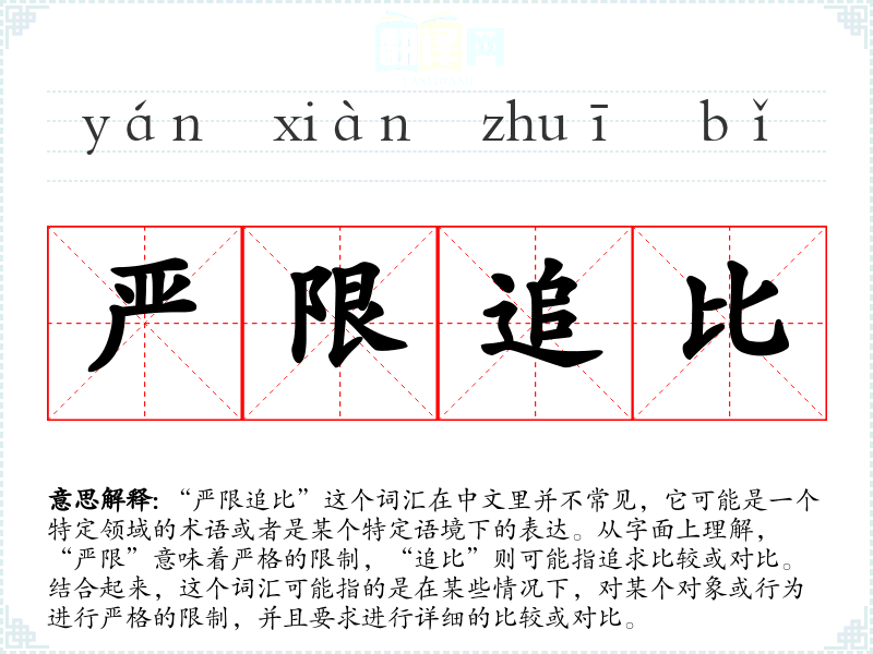 在特定的文化或社会背景下,“严限追比”可能被用来强调对细节的关注和对标准的严格遵守。例如,在追求高质量和精确度的行业或领域,这个词汇可能被频繁使用。