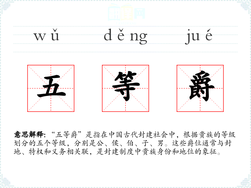 "五等爵"的意思解释、五等爵是什么意思由翻译网汉语词典查词提供。