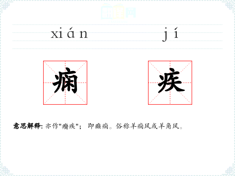 亦作"癵疾"; 即癫痫。俗称羊痫风或羊角风。