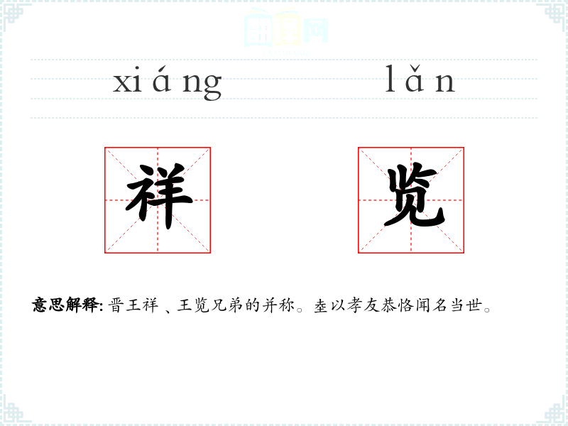 晋王祥﹑王览兄弟的并称。坴以孝友恭恪闻名当世。