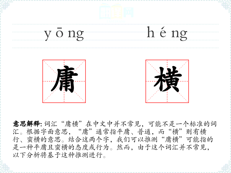 “庸横”可能指的是一种既平庸又蛮横的态度或行为,即在表现上既不突出也不合理,但却带有一定的霸道或不讲理的成分。
