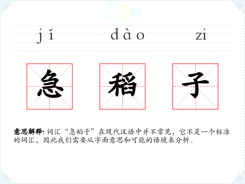 词汇“急稻子”在现代汉语中并不常见,它不是一个标准的词汇,因此我们需要从字面意思和可能的语境来分析。
