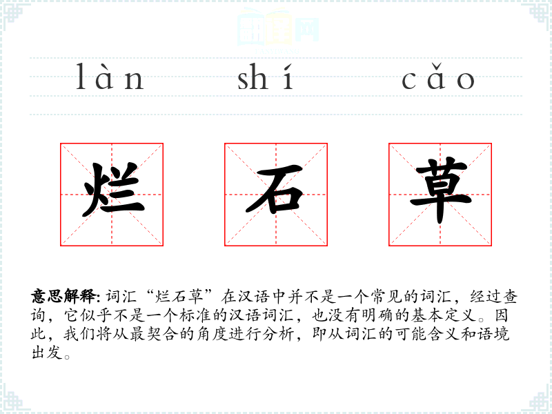 词汇“烂石草”在汉语中并不是一个常见的词汇,经过查询,它似乎不是一个标准的汉语词汇,也没有明确的基本定义。因此,我们将从最契合的角度进行分析,即从词汇的可能含义和语境出发。