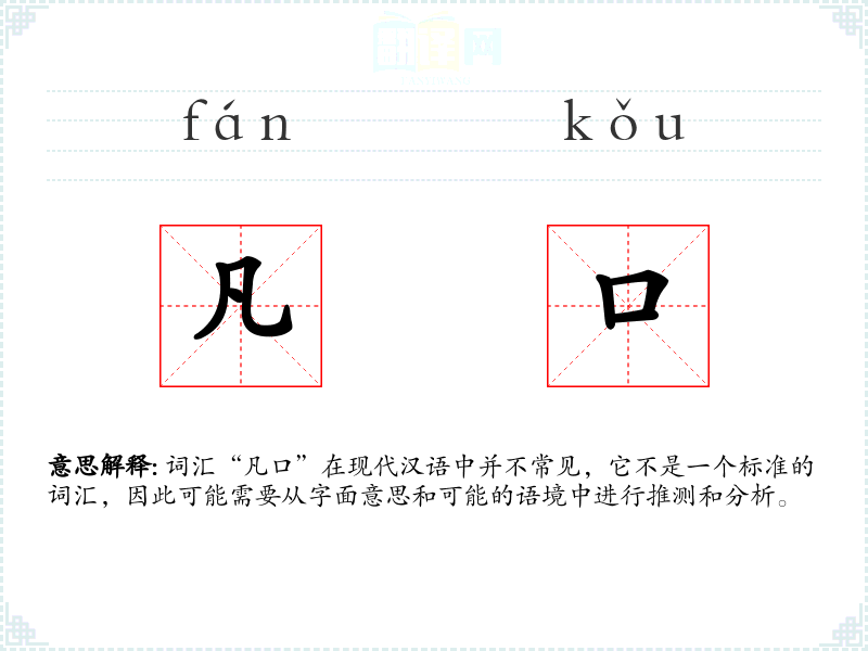 “凡口”字面意思可能是指“普通的口”或“一般的口”,暗示某种普遍性或平凡性。然而,由于这个词汇并不常见,其确切含义可能需要结合具体语境来确定。