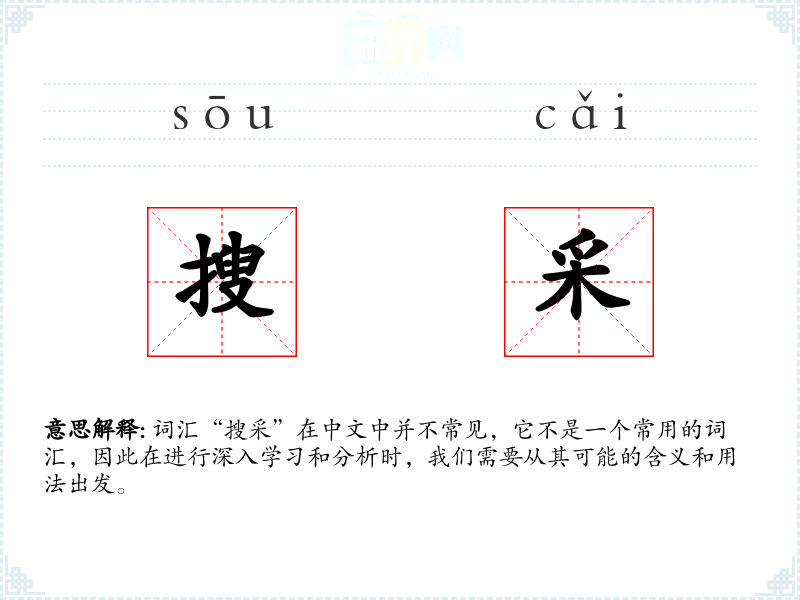 词汇“搜采”在中文中并不常见,它不是一个常用的词汇,因此在进行深入学习和分析时,我们需要从其可能的含义和用法出发。